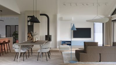 Rekuperacja zapewnia stałą, kontrolowaną wymianę powietrza i odzysk ciepła, co przekłada się na mniejsze straty energii, lepszą jakość powietrza, mniejszą wilgoć i wyższy komfort na co dzień. Dodatkowo wykonujemy komin spalinowy do kominka wraz z doprowadzeniem powietrza do spalania, przygotowany pod montaż wkładu kominkowego.
