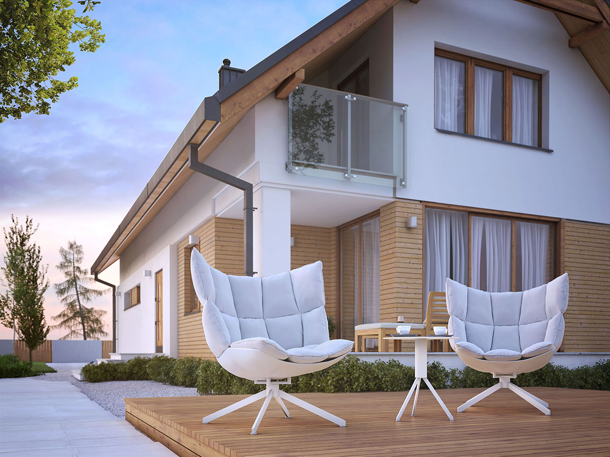 Piętrowy dom posiada użytkowe poddasze, dzięki czemu możemy podzielić go na dwie strefy – nocną i dzienną. Parter jest częścią domu przeznaczoną do życia codziennego wszystkich domowników i ich gości. Natomiast poddasze jest już częścią bardziej kameralną i pozwala na zachowanie prywatności.