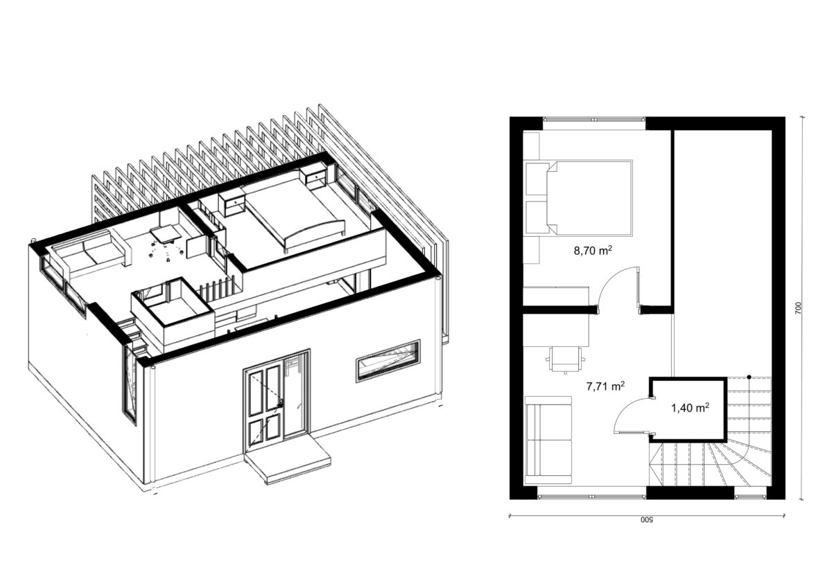 Koncepcja została opracowana i skierowana do inwestorów, poszukujących funkcjonalnych rozwiązań, a przy tym niewielkiego metrażu potrzebnego do zbudowania domku. Pomysł na realizację zadowoli osoby, które marzą o postawieniu chatki za miastem, w której będą mogli znaleźć spokój, ciszę i wytchnienie po ciężkim tygodniu lub myślą o takiej realizacji pod inwestycję i wynajem. Jednak nie musi to być tylko inspiracja do postawienia domku letniskowego. Bez problemu pomysł można zrealizować przy budowie domku do życia na co dzień – jako alternatywa dla mieszkania. Mimo niewielkich gabarytów w domku tym spokojnie mogą mieszkać 2-3 osoby.